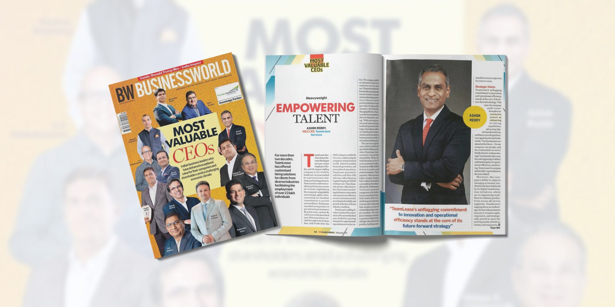 TeamLease Services aims to become the largest private sector employer of India, and the largest staffing company in the world by headcount. In a year marked by macroeconomic challenges and pricing pressures, TeamLease has delivered resilient performance across all verticals, highlighting the company’s adaptability and strategic agility. Demonstrating its steadfast commitment to growth and excellence, TeamLease recorded an impressive 18 per cent revenue increase to Rs 9,322 crore, up from Rs 7,870 crore in the prior fiscal year. This momentum carried through to the bottom line, with Profit After Tax (PAT) rising to a notable Rs 113 crore, underscoring the company’s strong financial health. Aided by prudent financial governance and streamlined operations, TeamLease generated a solid free cash flow of Rs 265 crore, with a Return on Capital Employed (ROCE) of 36 per cent. These financial metrics collectively reflect TeamLease’s unwavering dedication to innovation and operational efficiency across its business model, providing both stability and growth in the face of diverse industry conditions.